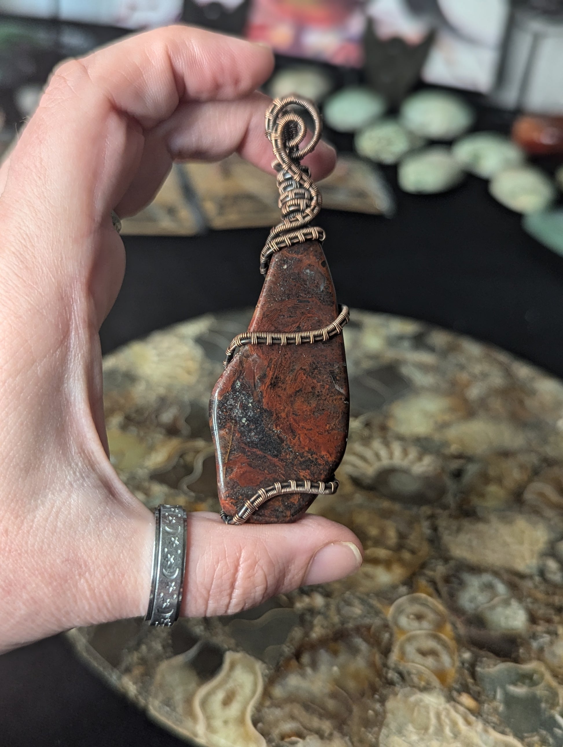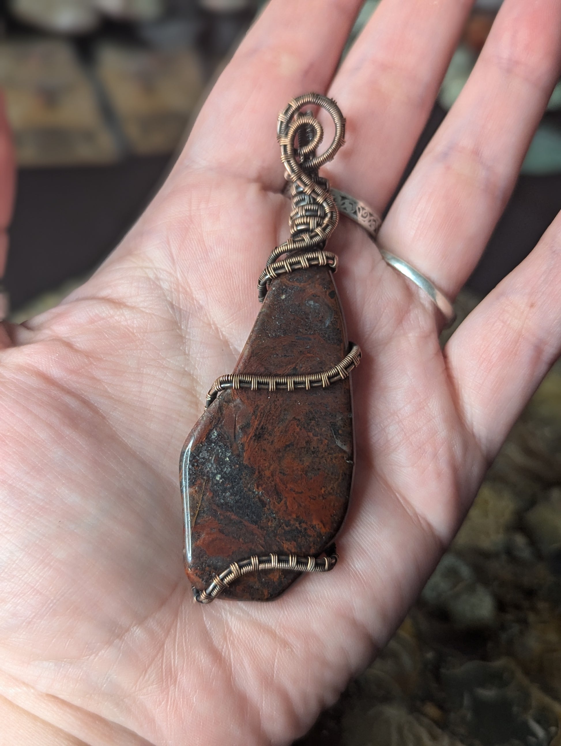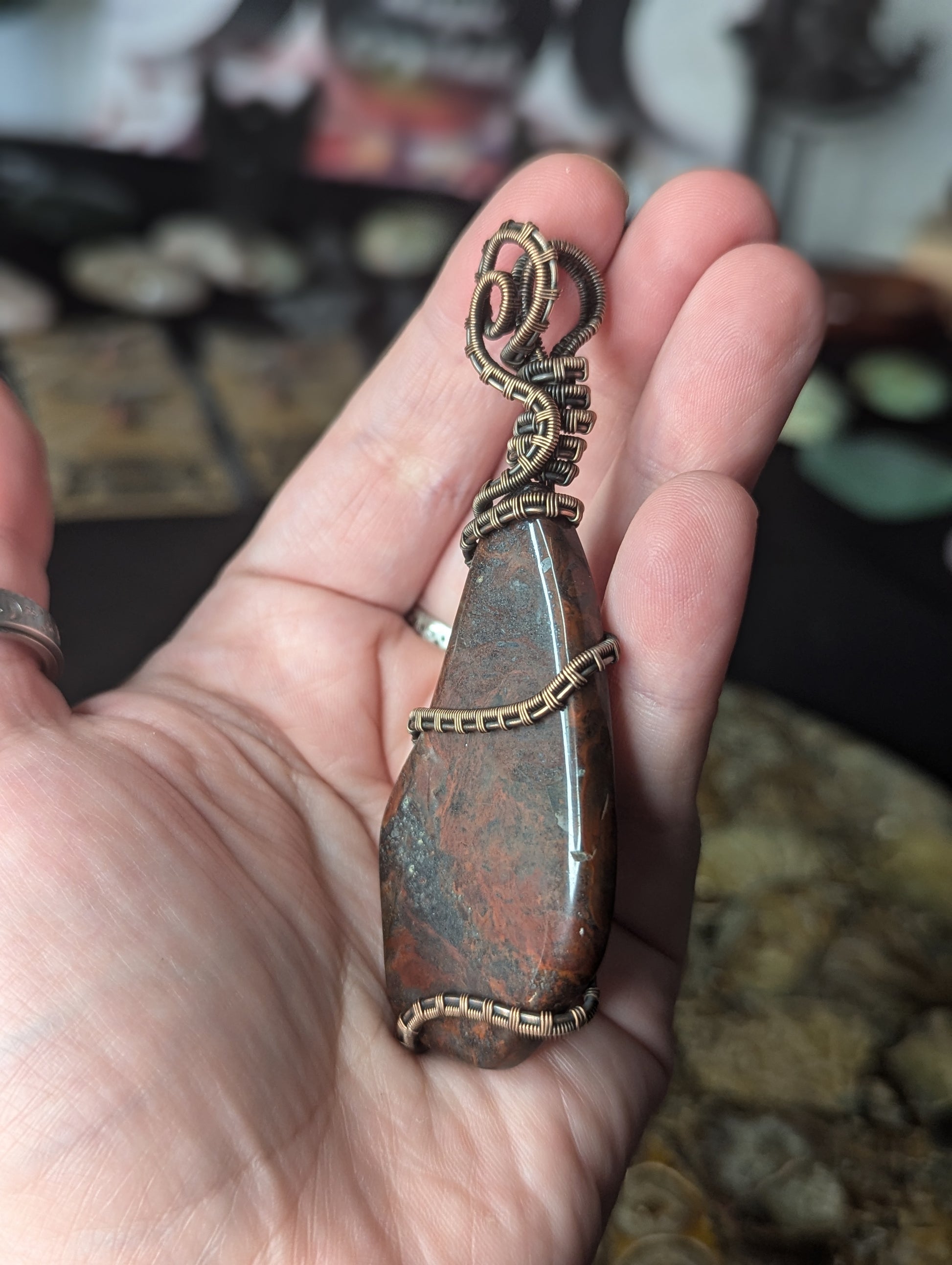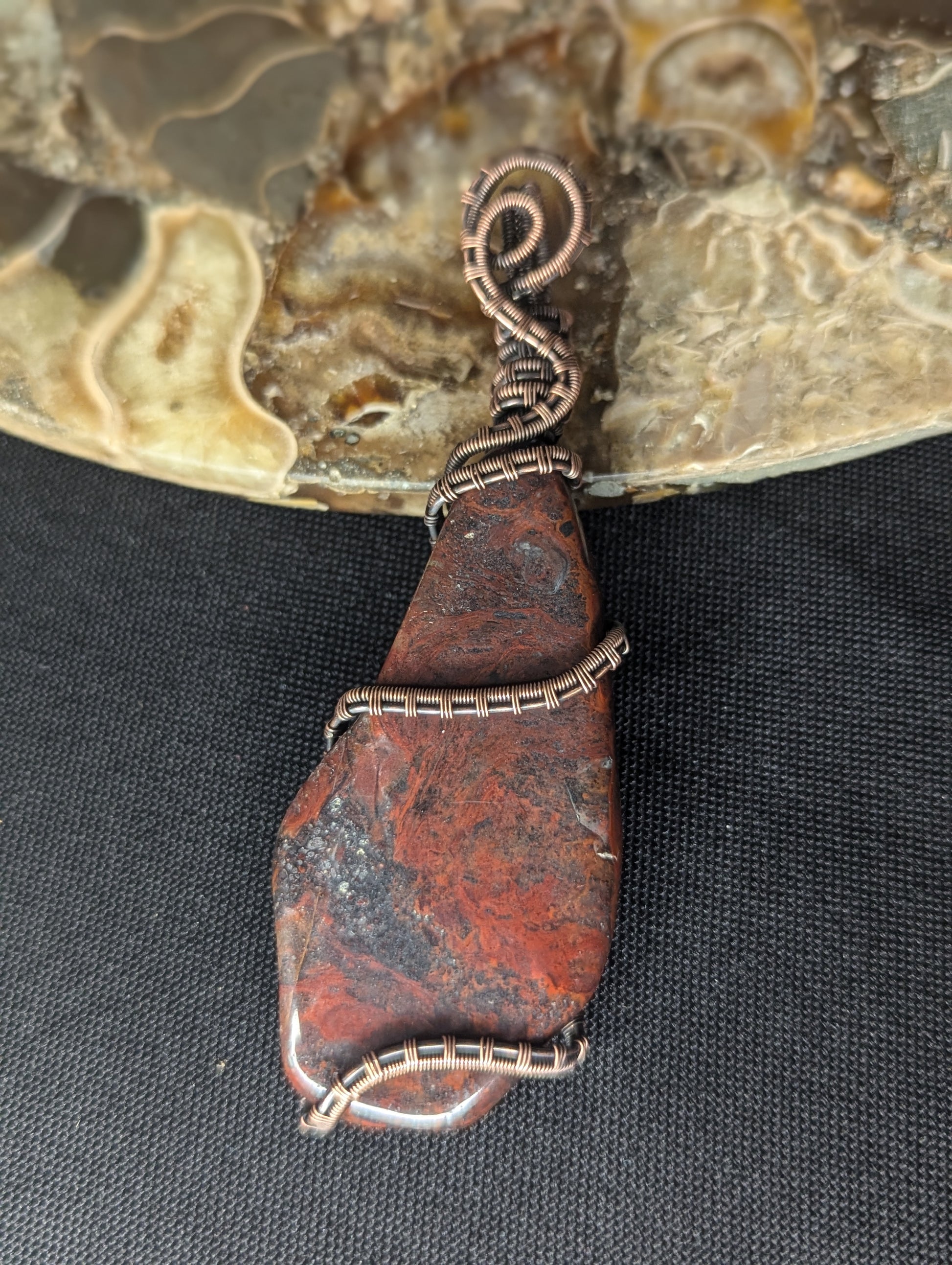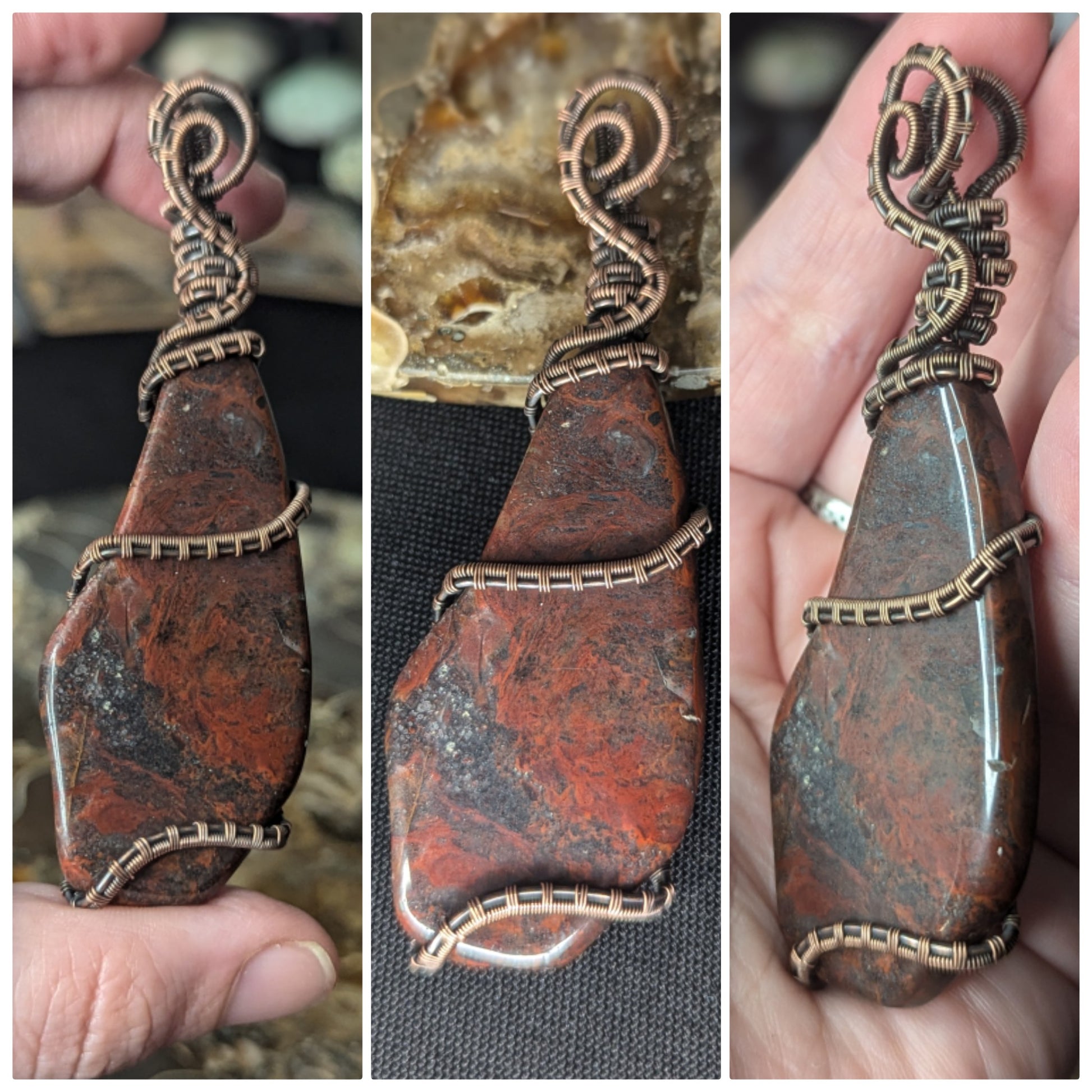 Handmade Red Jasper & Hematite Wire Wrapped Pendant